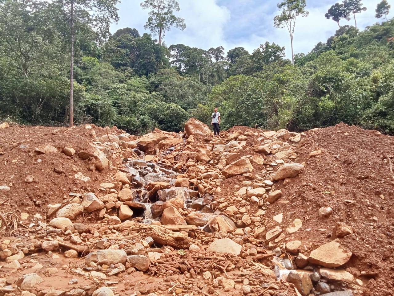Meskipun material tersebut saat ini belum menyumbat aliran sungai, kondisi ini